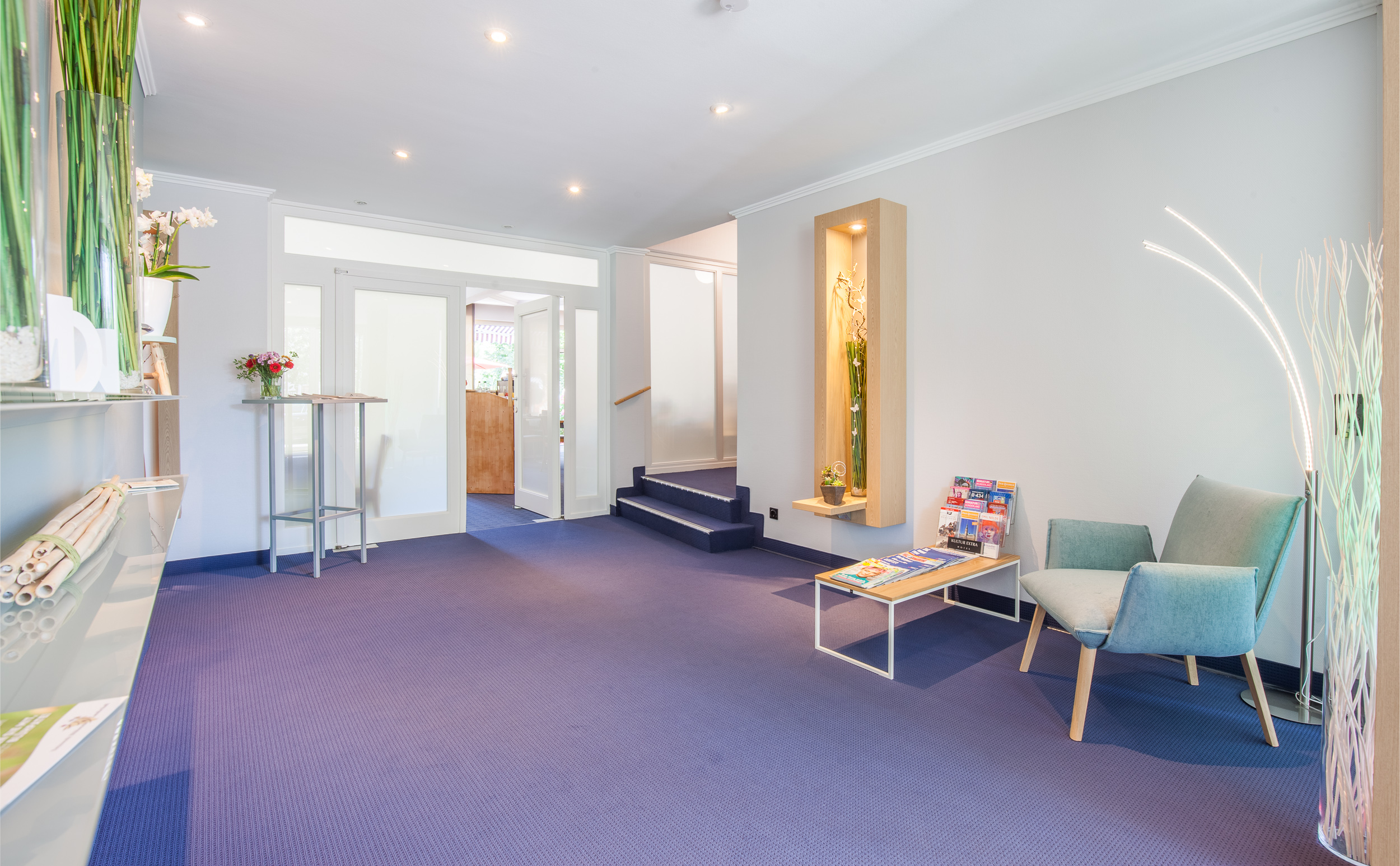 For meetings of up to 14 people, there is an air-conditioned seminar room fully equipped with media technology. Including standard technology (flip chart, pinboard, OHP and television). All other technical devices, such as a projector, can be rented at any time. The room can be darkened if required.